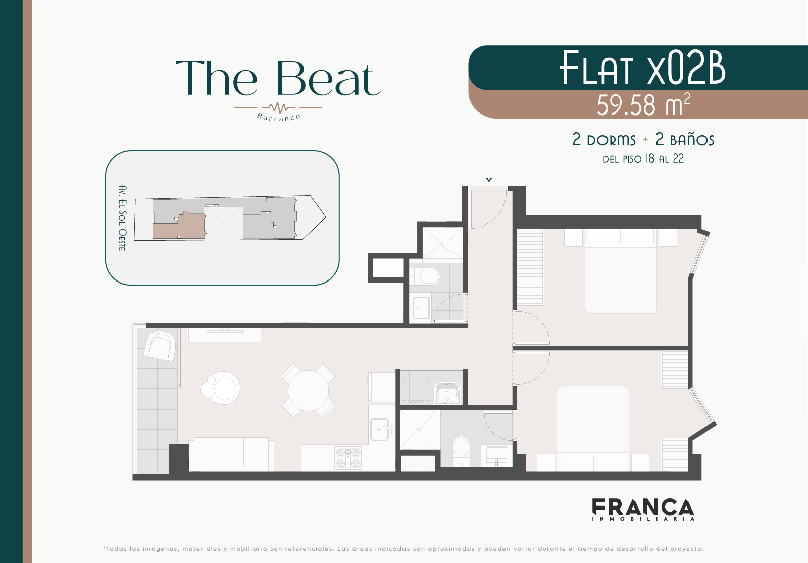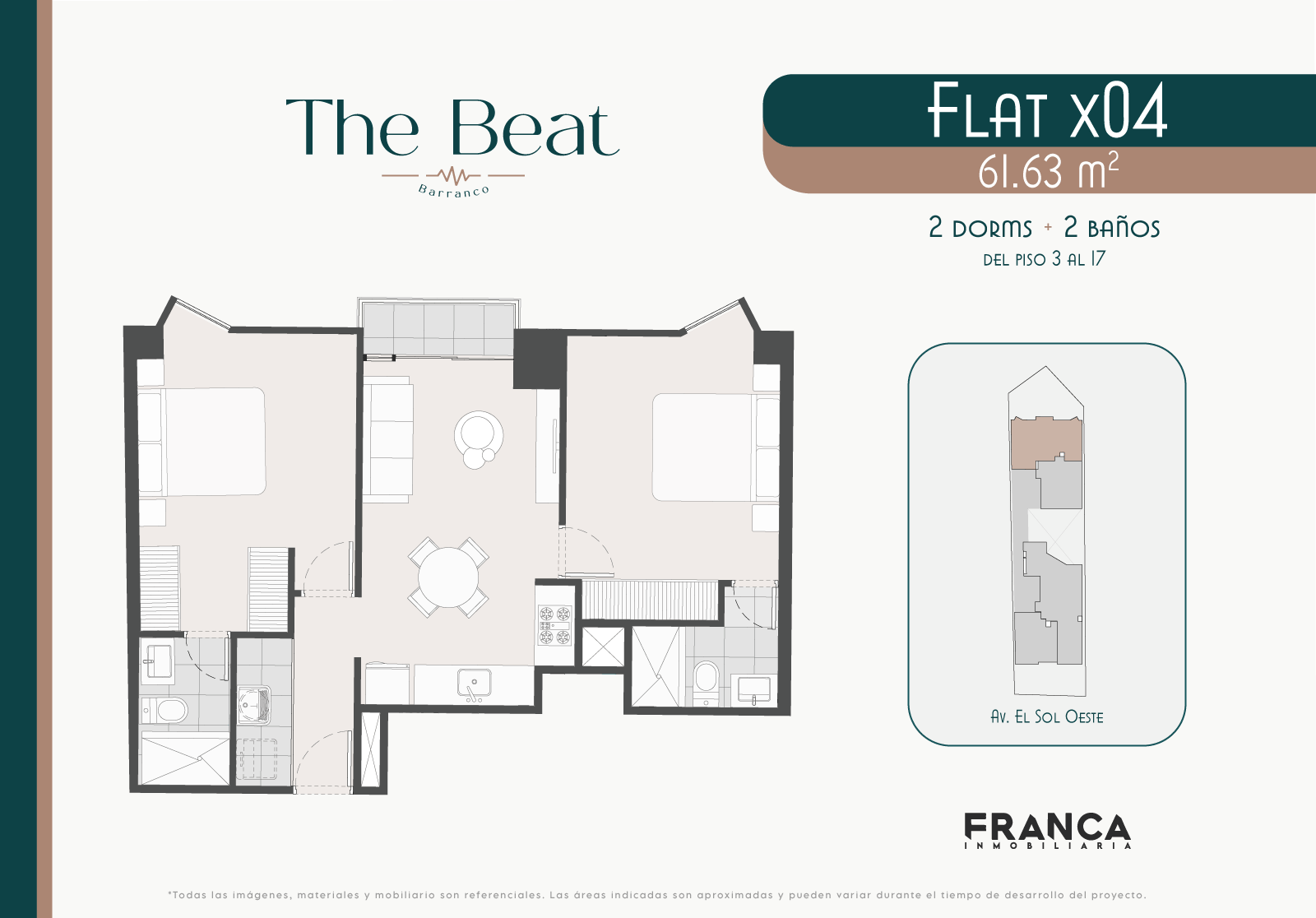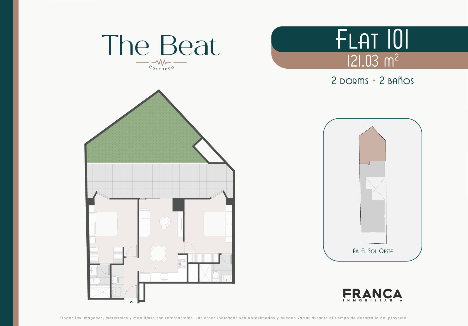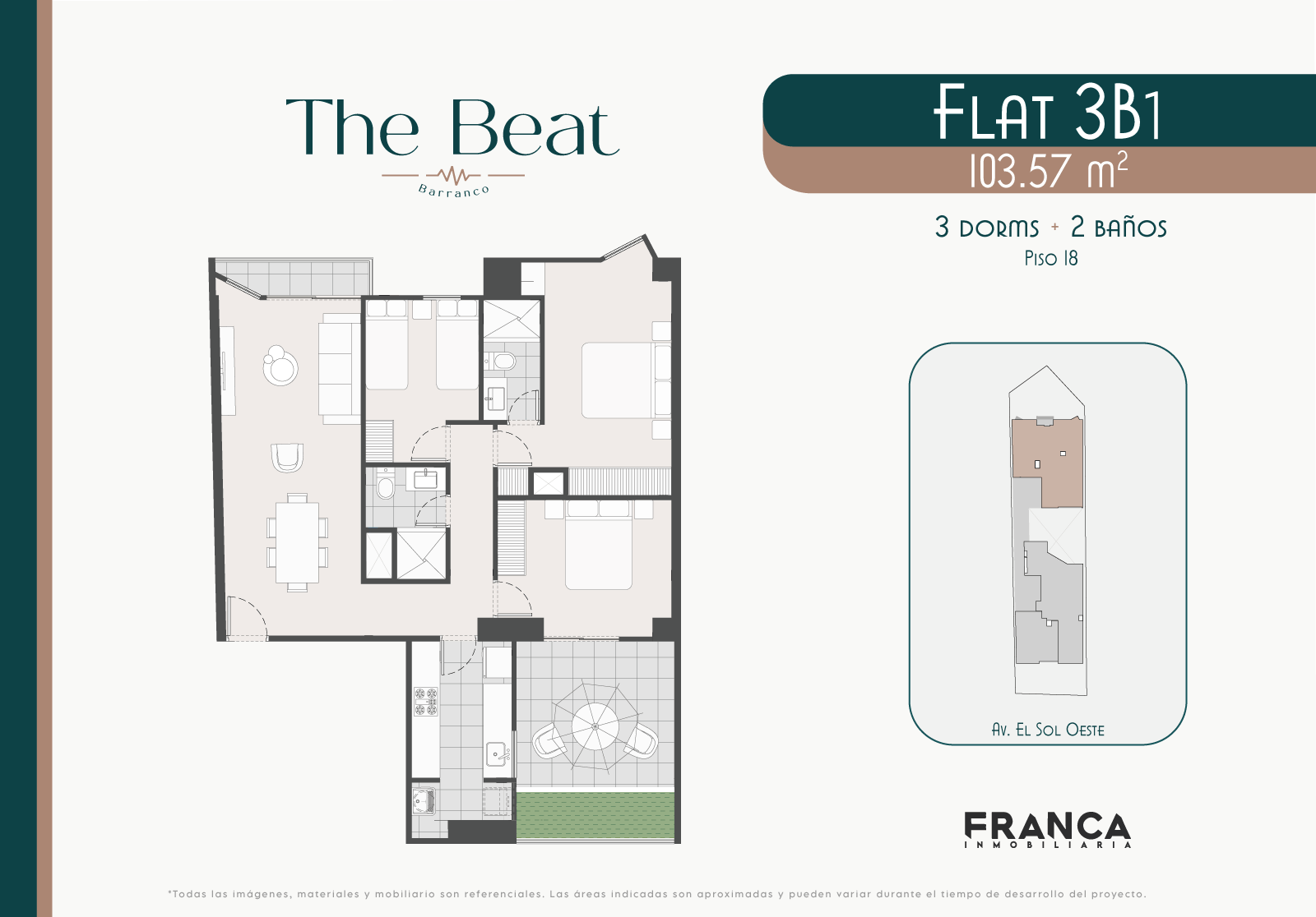 Es el nuevo proyecto de Franca Inmobiliaria en Barranco, con departamentos que van desde 40 m² hasta 121 m², 1, 2 y 3 dormitorios, siete áreas comunes y una ubicación privilegiada en Av. El Sol Oeste 265.